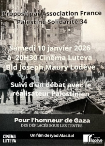 𝗖𝗶𝗻𝗲́-𝗿𝗲𝗻𝗰𝗼𝗻𝘁𝗿𝗲 𝗮𝘂 𝗖𝗶𝗻𝗲́𝗺𝗮 𝗟𝘂𝘁𝗲𝘃𝗮L’association France Palestine Solidarité 34 propose une projection-débat au Cinema Luteva.